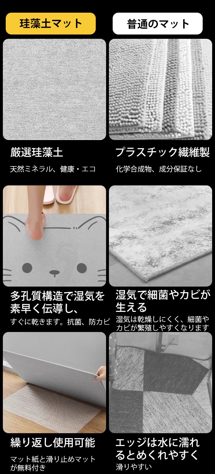 【1秒で速乾】ソフト珪藻土バスマット